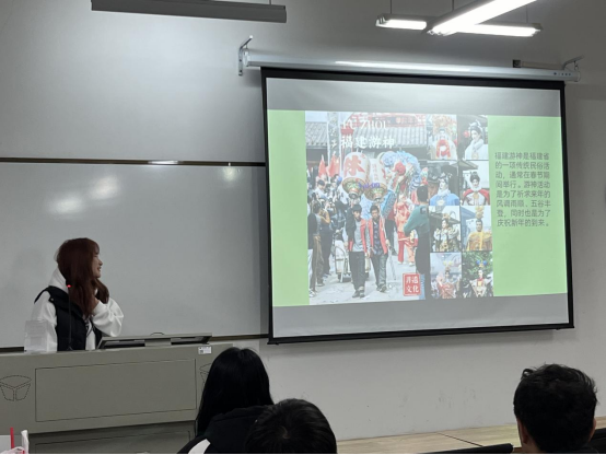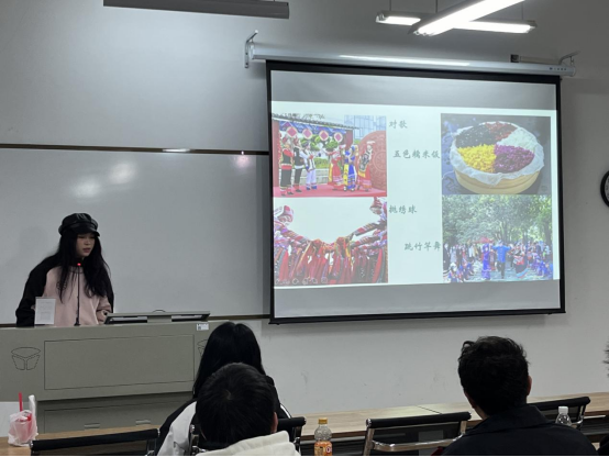 首先,来自湖北襄阳的赵刘珂同学介绍了寒假在厦门旅游时所见的美景及福建当地传统的民俗活动:游神。随后,来自广西南宁的刘楠茜同学介绍了家乡农历三月三日的歌圩节。两位同学的寒假生活分享勾起了同学们对中国传统节日及民族特色习俗的浓厚兴趣。