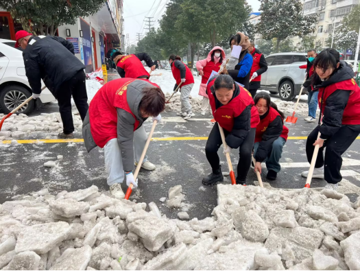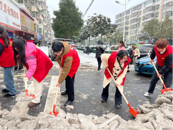 他们挥舞着铁铲和扫帚,与冰雪进行了一场激烈的“战斗”。虽然天气寒冷,但志愿者们的热情丝毫未减。他们团结协作,互相鼓励,用实际行动为社区居民扫出一条“平安路”。