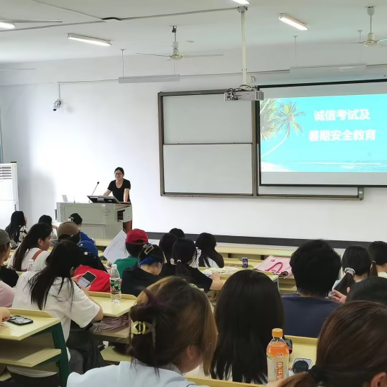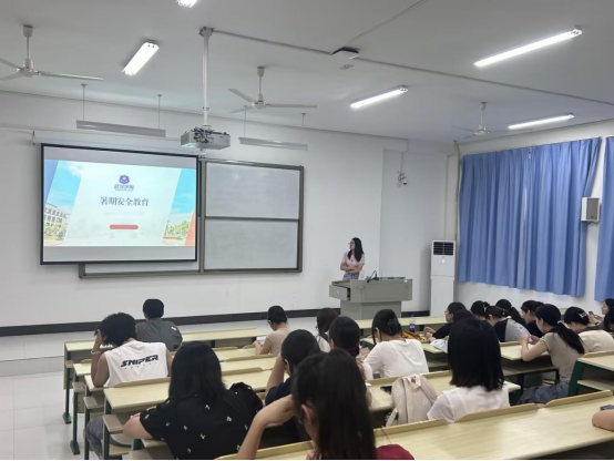 辅导员鲁玉婷在班上通过一系列安全知识图片以及真实的案例,告诉同学们暑期安全的重要性,为学生切实普及了安全知识。鲁老师强调了离校回家途中的安全问题,以及离校前对寝室安全防范的一系列措施。离校前应当检查水电是否关闭,并且关好门窗,避免发生安全事故。回家途中应重点注意交通安全以及防骗,保证每个人的人身安全。