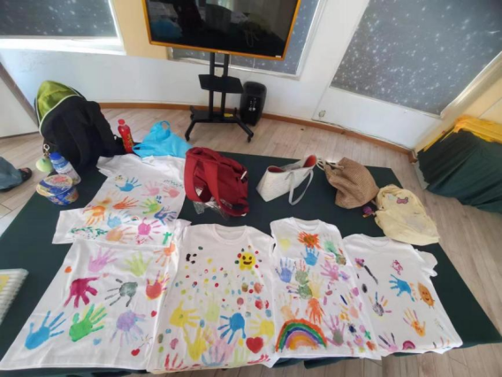 7月23日,随着暑期实践的尾声临近,“丹桂同心”志愿服务队精心策划了一场童心“首”绘活动,旨在通过艺术的形式,让孩子们表达对志愿者老师们陪伴与教育的感激之情。活动中,小朋友们身着白色的T恤,手持可水洗的颜料,在志愿者的引导下,充分发挥自己的想象力和创造力,在T恤上绘制出一幅幅充满童趣和个性的作品。