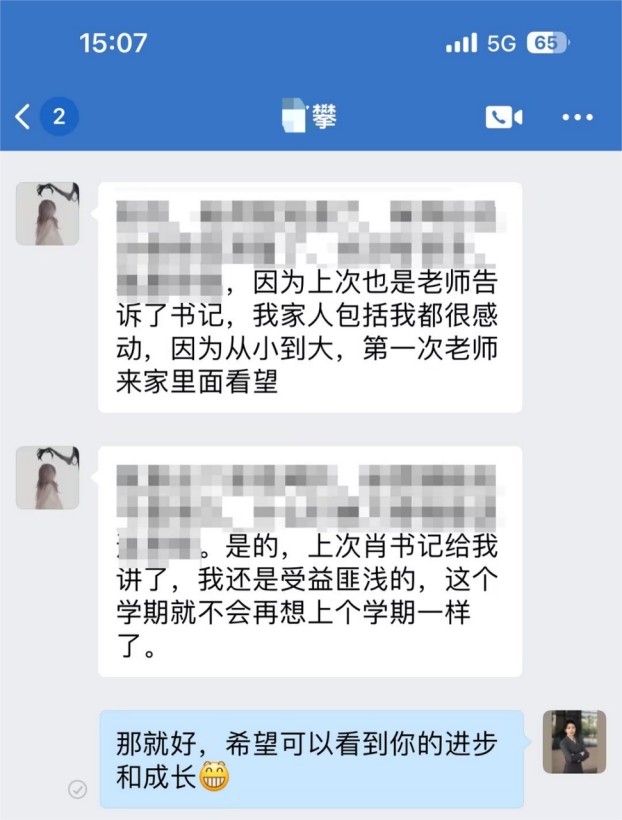 秋季开学后,小攀同学主动到肖老师的办公室。他看起来精神焕发,眼中闪烁着更加坚定的光芒。他感激地对肖老师说:“老师,谢谢您在暑假期间还来看望我。您的话让我深受启发,我一定会珍惜接下来的学习时光,好好学习,争取更大的进步。”