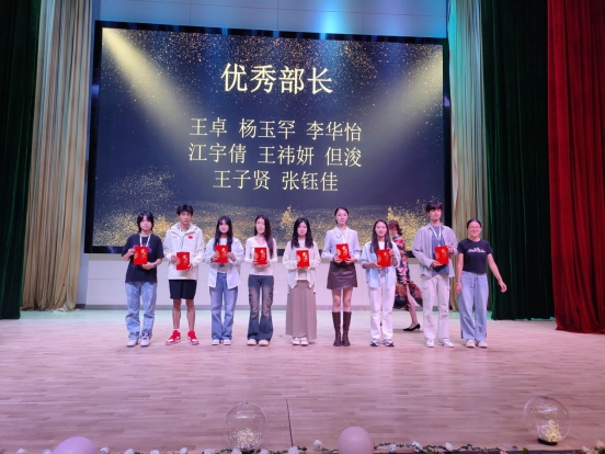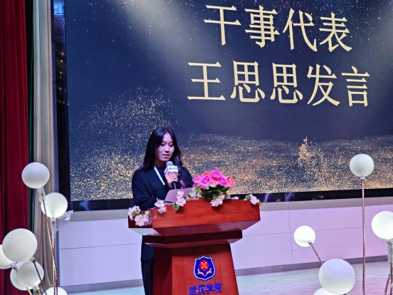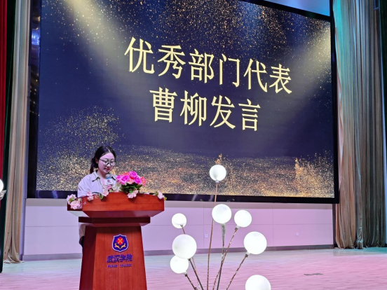 学生会副主席曹柳作为优秀干部代表发言,她非常感谢学院为自己提供了一个成长和展示的平台。回顾过去一年的工作,让她收获了自信和团队的友谊,在今后的工作中要进一步发扬求实创新的精神,共同建设美好校园。