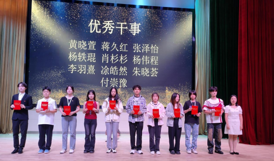 接下来,出席大会的领导和嘉宾老师为第五届团学联主席团、优秀学生干部颁发荣誉证书。