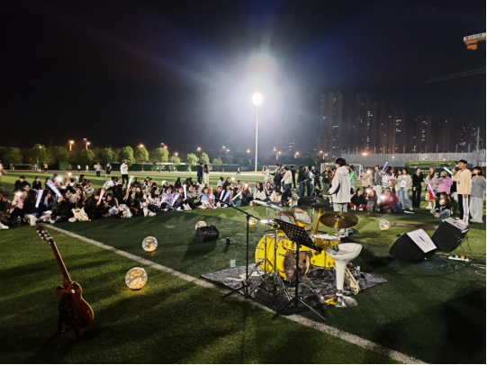 夜幕降临,操场被璀璨的灯光和欢声笑语装点得格外热闹。10月30日晚,一场由永利3544am登录官网团学联主办的草坪音乐节在这里如期举行,吸引了众多校园音乐爱好者前来参与。