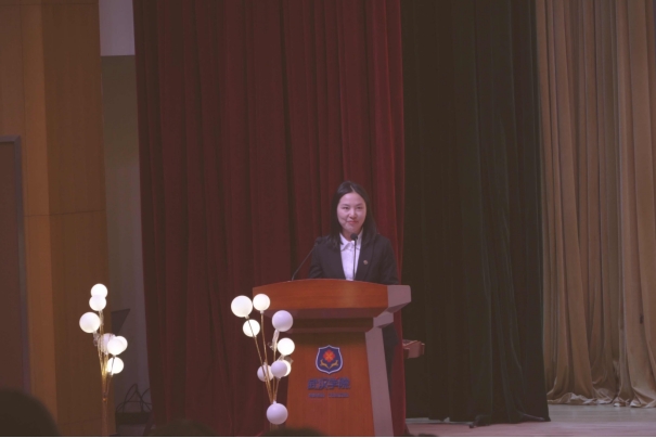 团委书记鲁玉婷发表开幕致辞,她首先对各参赛剧目的演职人员表示热烈的欢迎,希望同学们能够通过话剧表演的舞台,锻炼自己的语言能力,充分展示自我风采,也体味到戏剧艺术的魅力;同时,也希望同学们能进一步理解中国传统文化的内核,用英语讲好中国故事,向世界展示中华文化的独特魅力。