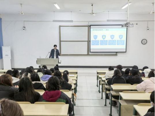 主题班会主要从安全教育、校园生活健康教育、心理健康教育、学业教育、新学期的重点工作等方面展开。辅导员通过主题班会形式开展安全教育,有效防范宗教渗透、网络和电信诈骗以及意外伤害等事件的发生;引导学生高度重视宿舍文明,打造积极的宿舍文化,营造文明、卫生、和谐的宿舍环境;加强学生良好生活习惯养成教育,引导学生早睡早起,走下网络,走出寝室,走向操场,加强体育锻炼,提升身体素质;及时掌握学生心理动态,帮助消除学生开学心理压力和思想顾虑;对上学期的期末成绩进行分析,引导学生找准新学期努力的方向……帮助学生们调整生活作息,适应校园生活,并明确新学期的学习规划。