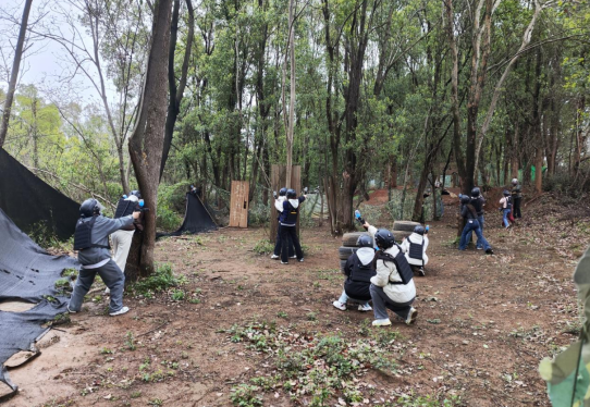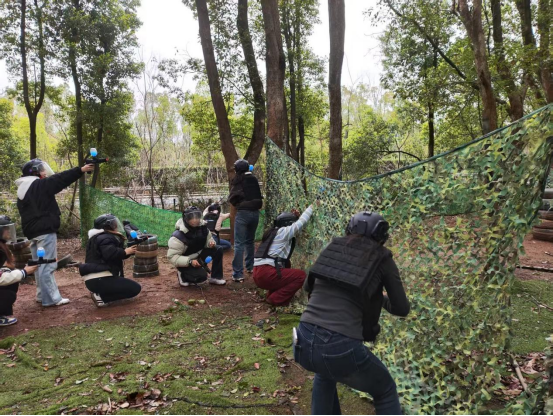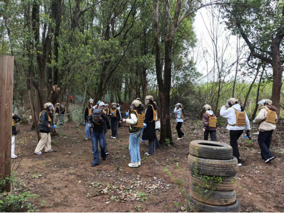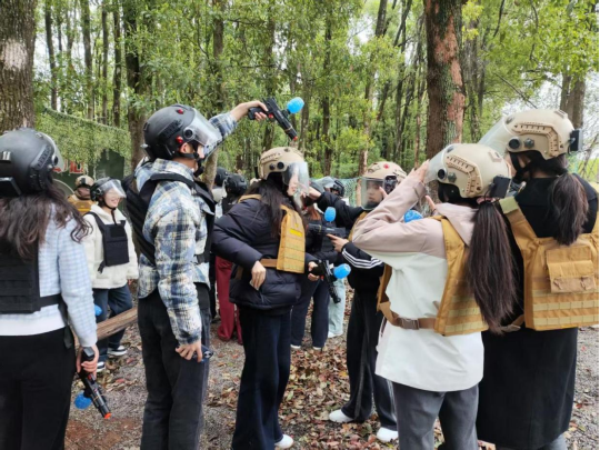 培训活动聚焦于一场紧张激烈的真人CS对抗赛。参赛的团学联干部们分为身着黑色与黄色战服的两组,在模拟战场中展开智慧与勇气的较量。双方队员迅速进入角色,从地形分析到战术部署,从火力分配到行动分工,充分展现了学生干部的战略规划能力。攻守交替间,队员们灵活调整策略,通过隐蔽突袭、团队掩护等战术动作,将实战对抗推向白热化。