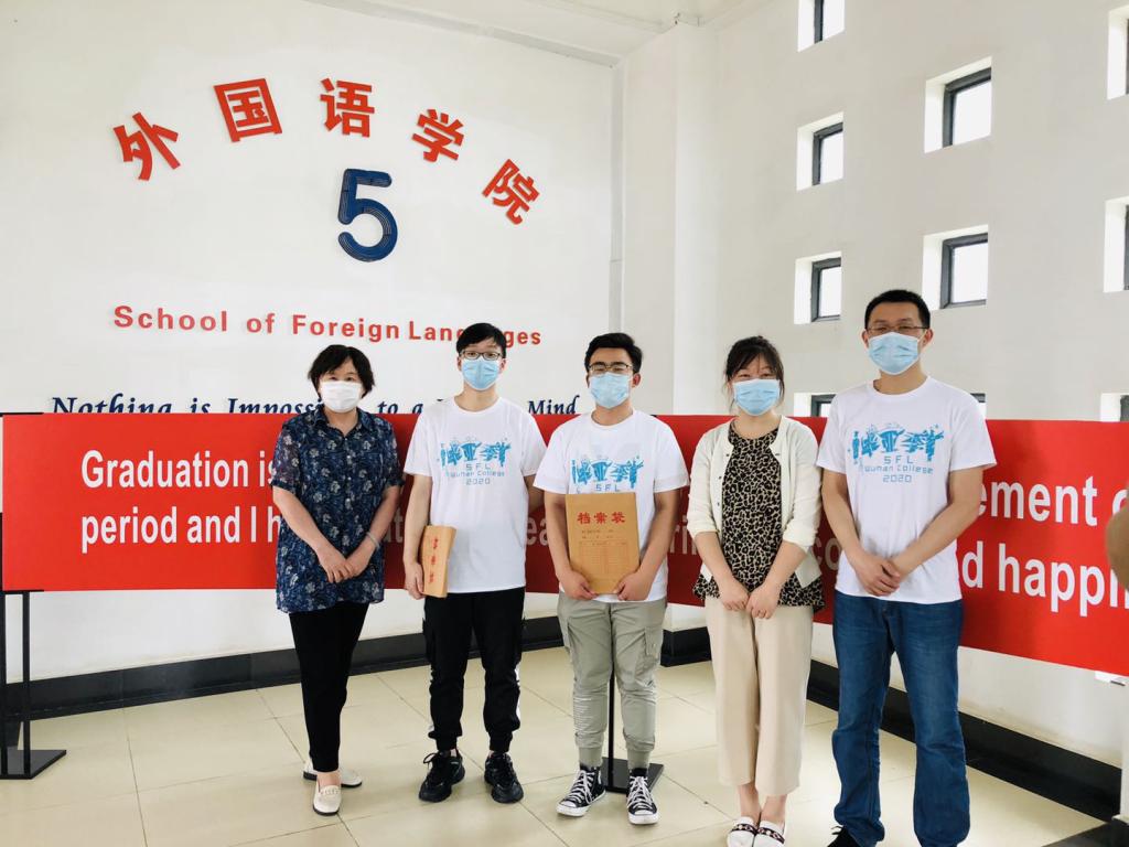 邱春英、裴沁、张洁兰、王理等多位专任教师也乘着毕业生回校的机会,纷纷赶回学校和学生一一惜别,祝贺同学们顺利毕业,同时希望同学们有机会多回母校看看。永利3544am登录官网英语系系主任贺玲、商务英语系系主任夏胜武特别给毕业生带来了寄语:愿同学们在未来的征程上坚守初心、志存高远,努力奋斗,祝大家前程似锦!