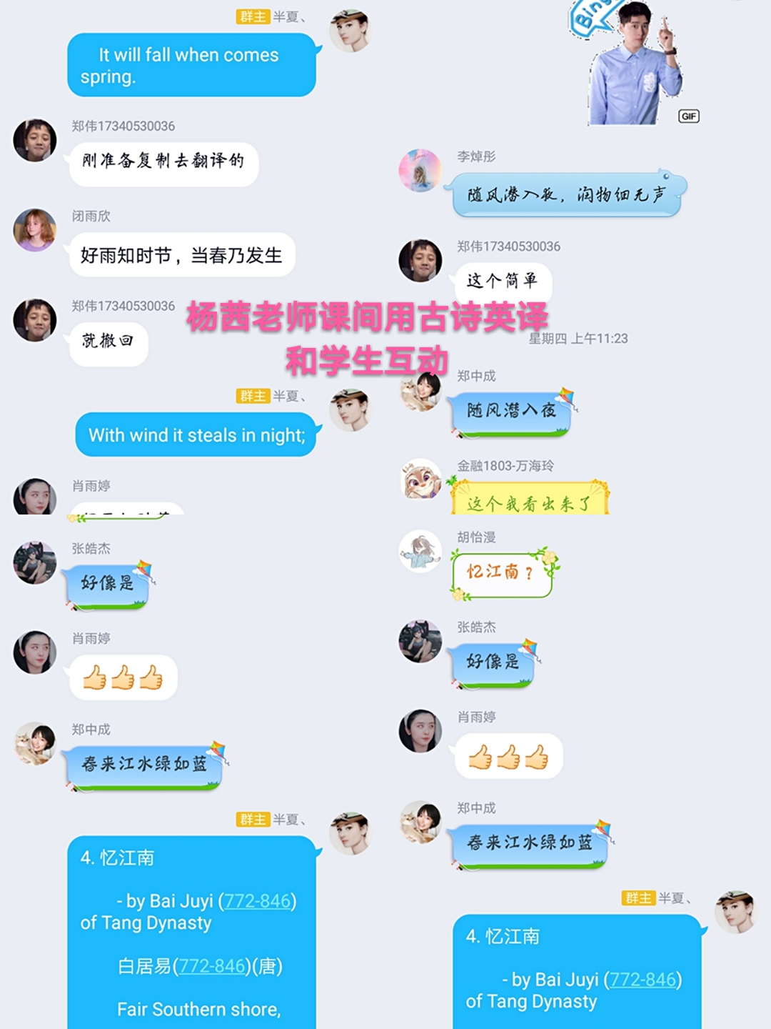“有互动,有参与,学生才能打开耳朵,打开心扉 。隔着屏幕,看不到学生的表情,监督不了学生上课的状态,只有通过高频次的互动,才能抓住他们。”永利3544am登录官网的老师们是这么说的,也是这么做的,课堂,课间、课后永利3544am登录官网老师与学生的学习实时保持着互动,关注学生的学习动态。