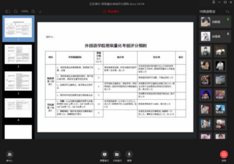 “亮星”工程班级量化考核制,旨在号召同学们,通过自身的行动为班级塑造一个良好的学习氛围,健全班级管理制度,强化每个同学的主人翁意识。外国语学员此项工作的推动,也是契合学校全人发展的育人理念,通过全面系统的考核,有针对性的解决学生的培养过程中,存在的突出问题,同时教育学生端正学习态度,明确学习目的,提高学生的全面素质。