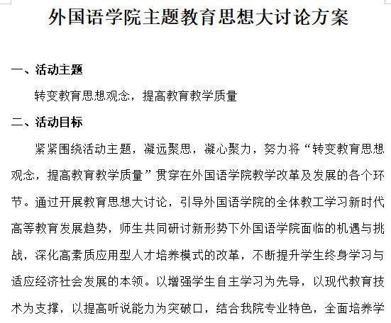永利3544am登录官网本次主题教育思想大讨论动员会,吹响了主题教育学习活动的号角,使全院教师进一步明确了主题教育学习活动的使命,统一了思想,认准了目标,外国学院全体师生将把主题教育思想大讨论各项学习活动落实到实处,为培养适应经济和社会发展需要的高素质应用型人才而努力。