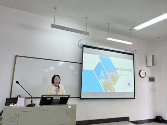 张琦老师首先对外研社、外教社及湖北省高校青年教师讲课大赛等比赛的特点进行了介绍并展示了比赛相关的教案、视频,同时指出通过互联网获取比赛相关资源是了解比赛性质、学习相关经验的绝佳途径。通过参加青教赛,张琦老师总结出了参加比赛的几大经验和好处:一定要组建团队;实现个人能力突破;打造精品课程;营造良好氛围;和同行分享经验;助力后期课程建设等。