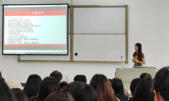 王双婷同学作为优秀学生代表,分享了自己专升本后的学习方法及学业规划。王双婷建议新生能够积极参与学科竞赛,以赛促学,夯实专业知识基础。