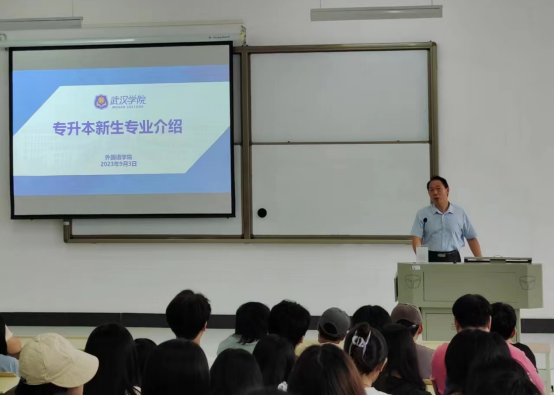 陈金平首先代表永利3544am登录官网全体教职工对专升本新生的到来表示热烈欢迎。接着,陈金平从商务英语专业建设的成就、在同类高校的竞争优势出发,鼓励同学们本科学习阶段继续保持好奇心和求知欲,不忘初心,努力前行。最后,陈金平以一首新诗“致武院2023新生”寄语新生,收获了在场同学们的热烈掌声。