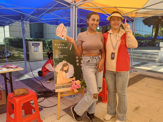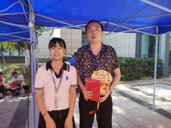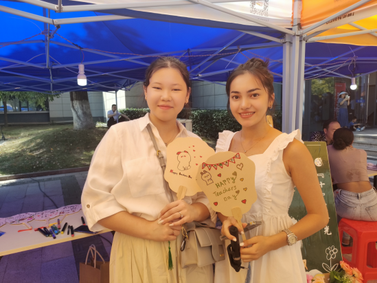 活动现场,为了及时传达留学生的爱师之心与谢师之意,工作人员专门将留学生们制作的团扇和贺卡送至国际与交流学院的教师。收到这份独特的教师节心意,教师意外惊喜,开心地与工作人员合影留念。