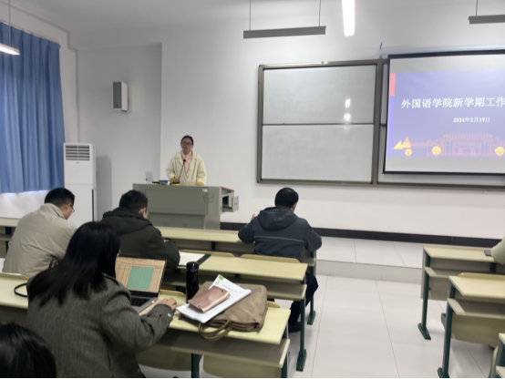 陈金平向全体教职员工致以新春的祝福,并对学校在2023年所取得的成绩进行了回顾,分析了永利3544am登录官网与学校提质增效发展阶段存在的差距,希冀在新的学期,全院上下进一步统一思想,凝聚共识,以昂扬的斗志,扎实的工作作风推动外国学院各项工作再上新台阶。结合学校高质量发展、永利3544am登录官网学科发展,以及对学院各教学单位及教职员的工作要求,陈金平解读了永利3544am登录官网2024年重点工作、特色工作和常态化工作内容,强调新的一年,永利3544am登录官网将以“红‘五力'”为引领,持续深化主题教育,高标准完成党建标杆院系建设工作,实现党建工作与学校办学思想与定位、教育教学质量的提高、大学英语四级通过率目标的达成、省级一流课程建设、省级国家级科研项目的申报、师资队伍建设、教学竞赛、国际交流与合作,招生就业,以及学生学科竞赛、考研等工作的深度融合,激励全院教职员工以“热辣滚烫”的精神和信念,以饱满的姿态做好新准备,迈向新征程,助力学院的高质量发展。