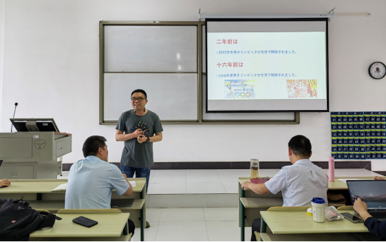 公共外语课部蔡喆老师讲授的《新编日语》,选取第七课中的形容词与形容动词的变形及活用和接续助词「が」的转折以及轻微对比逻辑用法。授课过程以师生问答的形式展开,以单元主题“北京オリンピック”为思政切入点,在形容词及形容动词活用变化的过程中描写标志性奥运事件以及中国近年来在高铁上的巨大成就,让学生在习得活用基础之上,通过实例认知民族自信,达成立德树人的思政目标。