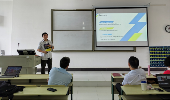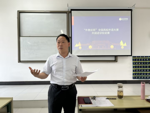 随后,文声芳副院长组织举行了两类比赛,一是第十五届外教社杯全国高校外语大赛,参赛教师为蔡喆、周松、陈雪、王理;二是第九届青年教师教学竞赛,参赛教师为陈默。本次比赛的评委团队由院长陈金平教授、督导马云霞教授、教学副院长文声芳、商务英语系主任蓝建青、英语系主任谢承凤组成,全院专任教师进行现场观摩学习。