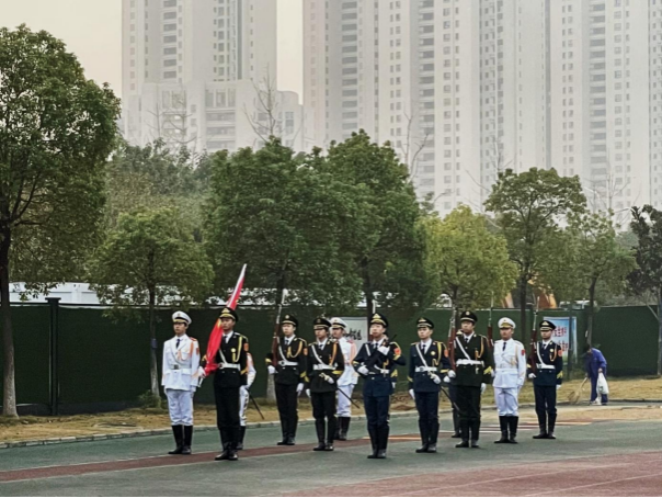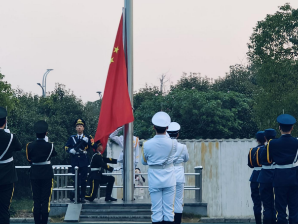 晨光逐渐明亮,远处传来了整齐的脚步声,国旗护卫队的队员们身着笔挺的制服,肩扛着鲜艳的五星红旗,迈着坚定的步伐走向升旗台。在庄严的国歌声中,鲜艳的五星红旗缓缓升起,全体师生面向国旗肃立,行注目礼,表达对祖国的热爱和对勤俭节约精神的崇高敬意。