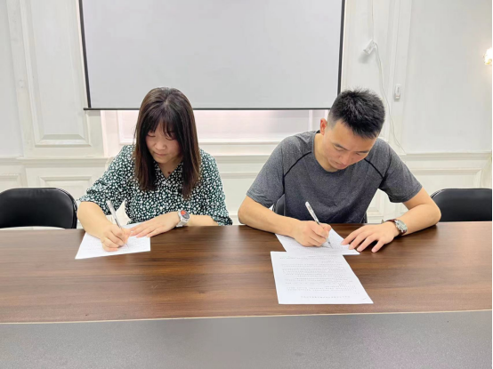 座谈会上,双方交流了毕业生实习及留教的几位毕业生的情况,牟老师对永利官网学生踏实勤奋,乐学肯学、勇于挑战自我的良好素养给予了高度认可,对长期、稳定合作提出期许。曹辉、夏胜武介绍了永利官网专业设置及学生培养情况,反馈了实习学生对乐学教育的认可,认为乐学教育专业化的教学、管理体系,让学生学以致用。双方就毕业生实习时间、专业需求、实习管理以及学生实习后的就业进行了深入交流,就实习、就业合作达成了一致。随后双方分别签订了实习、就业协议,并举行了共建实习就业基地授牌仪式。