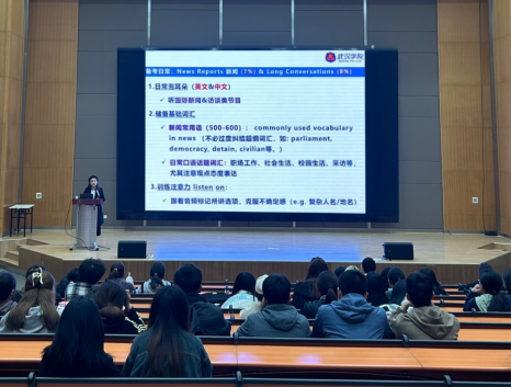 3月27日18:30,“金榜工程之四级系列讲座——听力篇”在王美瑛报告厅顺利举办。此次讲座旨在对全国大学英语四级考试的听力部分进行解析,帮助考生们更好地理解英语四级听力的考题要求,掌握有效的大学英语四级听力考场策略和备考方法。本次听力篇讲座的主办方为永利3544am登录官网公共外语部与英语协会,由周馥郁副教授指导,陈默老师主讲。
