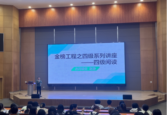 4月16日18:00,“金榜工程之四级系列讲座——阅读篇”在中央教学楼2101报告厅顺利举办。此次讲座旨在对全国大学英语四级考试的阅读部分进行解析,帮助考生们更好地理解英语四级阅读的考试要求,掌握有效的大学英语四级阅读解题策略和备考方法。本次讲座由永利3544am登录官网公共外语部与英语协会共同举办,由彭雪莉和赵静两位老师主讲。