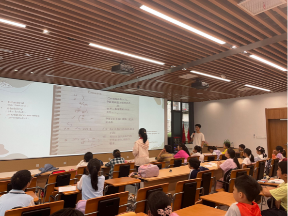 在开启教学活动前,丁嘉伟给小队员们进行了幽默风趣的自我介绍,活跃了课堂的氛围,并对整堂课的教学内容进行了总体的介绍。他结合自身的口译学习经验与小队员们进行了探讨交流。