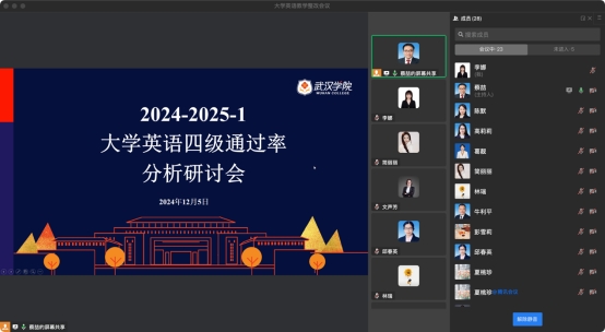 12月5日,永利3544am登录官网公共外语课部召开了大学英语四级通过率分析研讨会。会议以线上形式进行,由公共外语课部主任蔡喆主持,公共外语课部全体教师参会。本次会议以“聚焦教学质量,推动四级备考”为主题,针对12月4日校领导莅临学院的指导精神,深入剖析四级通过率现状,探讨创新教学方法,制定实施计划,为进一步提升学生英语能力和考试通过率提供理论支持与实践指导。