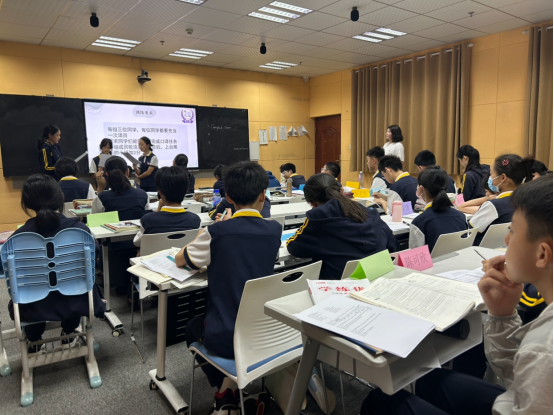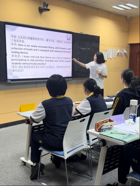 在讨论完毕后,王壹涵邀请了部分小队员进行讨论展示环节,由小组成员分别担任导游、游客与口译,小队员的口译展示表现可圈可点,教室里爆发出了阵阵掌声。王壹涵也对他们的优秀表现赞赏有加,此外还针对其中的不足之处提出了改进方法。