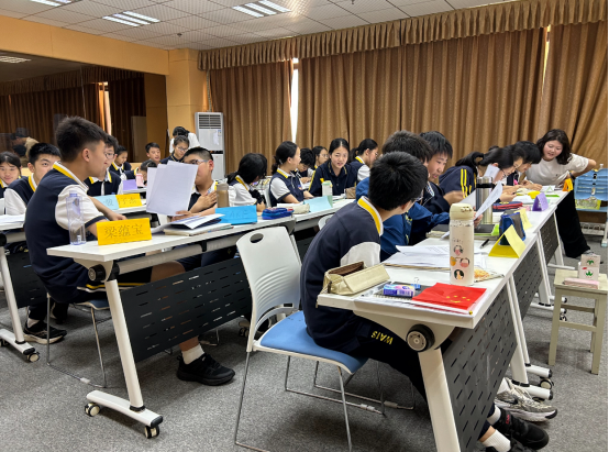 小队员们表现出了十足的兴趣,对口译的细节处理展开了热烈的讨论。王壹涵与丁嘉伟走到台下,参与到学生们的讨论之中,针对小队员们提出的问题进行及时解答,引导小队员们培养英汉口译的意识并提高口译水平。在他们的指导下,多数小队员们都能够熟练掌握基本的口译方法与技巧并将其运用到日常的学习中。