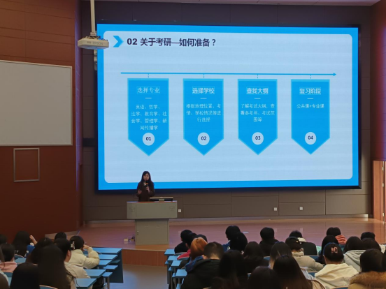 在答疑环节,面对这位优秀的学姐,同学们争先恐后的提出自己的疑问,校友徐玉凡耐心地解答。她特别强调,大学最后两年是非常忙碌的,面临着考研、求职、毕业论文等多重压力,每位同学都要学会如何管理时间,学会高效利用有限的时间去做更多的事情,从而在这个过程中得到进步、提高和突破。同学们与徐玉凡学姐互动热烈,不时响起阵阵掌声。
